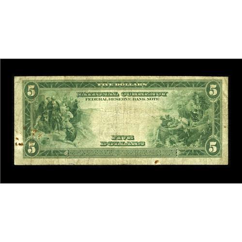 <B>Fr. 781 $5 1918 Federal Reserve Bank Note Very Good.</B></I> Though this note may have had its better days, it is nonetheless still scarce with only 33 examples reported extant. Some rust spots are noted, but are almost all in the margins.<BR><I>From The Bill and Kathy Stella Currency Collection</B></I><BR><BR><b>Shipping:</b> Coin/Currency (<a target="_blank" href="http://www.heritageauctions.com/common/shipping.php">view shipping information</a>)