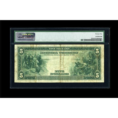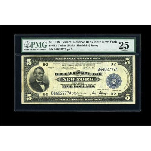 <B>Fr. 782 $5 1918 Federal Reserve Bank Note PMG Very Fine 25.</B></I> The face is bright for the grade on this note. This is a tougher design for type that is rarely given the praise it deserves. <BR><BR><b>Shipping:</b> Coins & Currency (<a target="_blank" href="http://www.heritageauctions.com/common/shipping.php">view shipping information</a>)