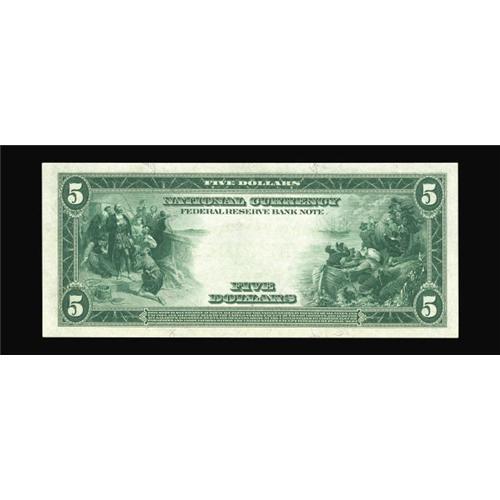 <B>Fr. 782 $5 1918 Federal Reserve Bank Note Superb Gem New.</B></I> A sharply printed note that exihibits embossing, centering, and wide margins. Very few notes of this number will equal or exceed the grade of this beautiful example.<BR><I>From The Plymouth Rock Collection</B></I>