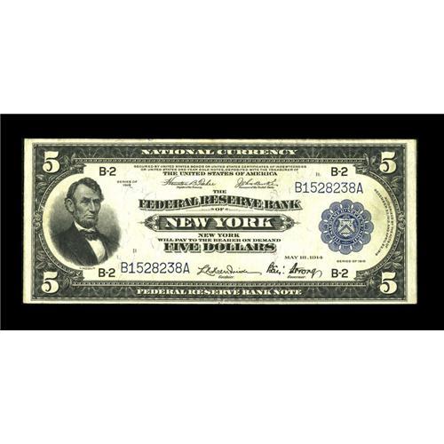 <B>Fr. 782 $5 1918 Federal Reserve Bank Note Very Fine.</B></I> This is an evenly circulated New York $5 that shows a little paper disturbance in the back bottom margin.<BR><BR><b>Shipping:</b> Coins & Currency (<a target="_blank" href="http://www.heritageauctions.com/common/shipping.php">view shipping information</a>)