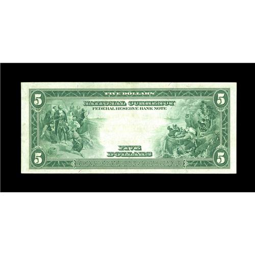 <B>Fr. 783 $5 1918 Federal Reserve Bank Note Choice New.</B></I> Though a trifle flat, this piece is well margined and brightly colored.<BR><I>From The Plymouth Rock Collection</B></I>