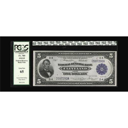 <B>Fr. 785 $5 1918 Federal Reserve Bank Note PCGS Gem New 65.</B></I> Very nicely margined, with good color and strong eye appeal.