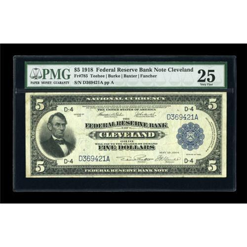 <B>Fr. 785 $5 1918 Federal Reserve Bank Note PMG Very Fine 25.</B></I> A lightly circulated Cleveland $5 FRBN.<BR><BR><b>Shipping:</b> Coins & Currency (<a target="_blank" href="http://www.heritageauctions.com/common/shipping.php">view shipping information</a>)