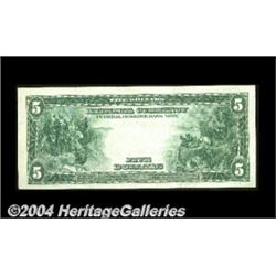 Fr. 785 $5 1918 Federal Reserve Bank Note Superb Gem New. The most common of the FRBN Fives, with over 200 examples known. This one is a real beauty, with broad margins, ideal colors, deep, original embossing throughout the surface of the note, and tremendous eye appeal. A most exceptional example of the type. <BR><BR><B>Important notice:</B> Heritage usually auctions material at the rate of 200-250 lots per hour. On some occasions eBay Live bid software or the Internet may not be able to keep up with the pace of the auction. We recommend placing a realistic absentee bid now as insurance to avoid disappointment. Occasionally the auctioneer may eliminate or reject an eBay Live bid, and the auctioneer may also reopen a lot after the close of the eBay live bidding (usually because we missed an audience bid), and may reject your bid even if it shows you as the winning bidder. By bidding via eBay Live, you agree that Heritage may award the lot to another bidder at its sole discretion under the circumstances described above or any other reasonable circumstances. Since eBay bids are not shown to us until we open the lot on the floor, we treat those bids just like floor bids. In most cases the floor responds before the eBay bid is presented to us, due to Internet lag time, so for consistency we have made it a policy that floor bids are always considered first over tie eBay live bids. Also please note that all Heritage lots purchased through eBay Live carry a 20% Buyer's Premium. Please make sure you read the Terms and Conditions before you bid. <BR><BR><B>IMPORTANT ANNOUNCEMENT ABOUT RESERVES:</B> Heritage now divulges all reserves on its web site 7 days before every auction. If you want to know whether the reserve on this lot has been met, and if not, what the reserve amount is, please visit this lot page on the HeritageCoin.com web site, or email: bid@HeritageGalleries.com
