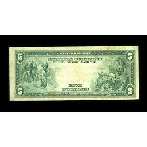 <B>Fr. 790 $5 1918 Federal Reserve Bank Note Fine.</B></I> Though a touch flat, this note faces up well. Some pinholes are noted when this FRBN is candled, but are not readily apparent.<BR><I>From The Bill and Kathy Stella Currency Collection</B></I><BR><BR><b>Shipping:</b> Coin/Currency (<a target="_blank" href="http://www.heritageauctions.com/common/shipping.php">view shipping information</a>)