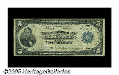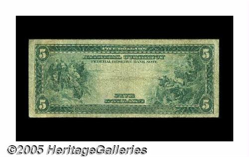 <B>Fr. 792 $5 1918 Federal Reserve Bank Note Fine.</B></I> A rare number with under a dozen examples reported in all grades. This one has a very good look for the grade, and has no problems but for a scattering of tiny pinholes and a well-repaired small hole.