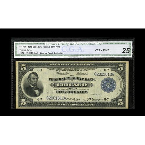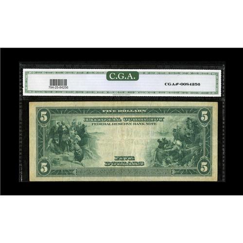 <B>Fr. 794 $5 1918 Federal Reserve Bank Note CGA Very Fine 25.</B></I> A bit of aging is noted about the edges, though the center remains bright. This piece is not included in the census.