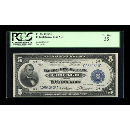 <B>Fr. 794 $5 1918 Federal Reserve Bank Note PCGS Very Fine 35.</B></I> This lightly circulated FRBN has all the eye appeal of a full AU.<BR><BR><b>Shipping:</b> Coins & Currency (<a target="_blank" href="http://www.heritageauctions.com/common/shipping.php">view shipping information</a>)