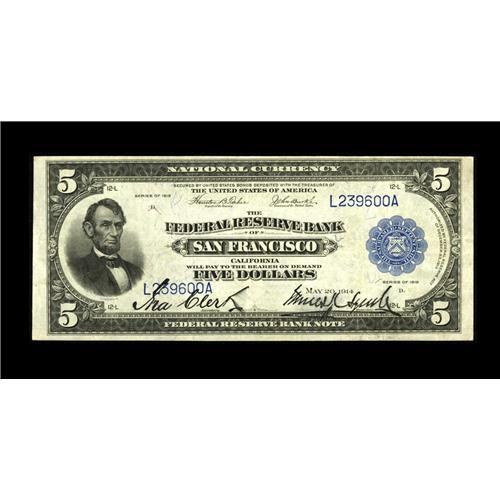 <B>Fr. 808 $5 1915 Federal Reserve Bank Note Extremely Fine.</B></I> This is a nice example for the grade with original paper surfaces and decent margins. Only about 30 notes of this number are known in all grades combined.<BR><I>From The Bill and Kathy Stella Currency Collection</B></I><BR><BR><b>Shipping:</b> Coin/Currency (<a target="_blank" href="http://www.heritageauctions.com/common/shipping.php">view shipping information</a>)