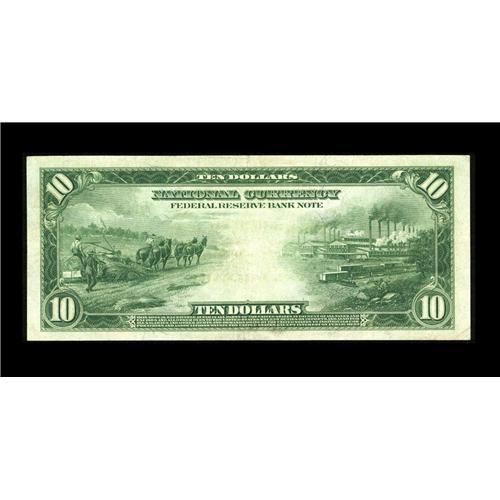 <B>Fr. 810 $10 1918 Federal Reserve Bank Note Extremely Fine.</B></I> A previously unrecorded serial number is found on this $10. This tougher Friedberg number has only about two dozen notes documented.<BR><I>From The Plymouth Rock Collection</B></I>
