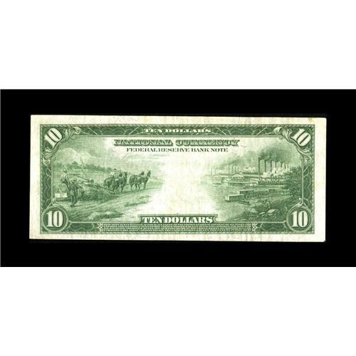 <B>Fr. 815 $10 1918 Federal Reserve Bank Note Fine-Very Fine.</B></I> The number of collectible examples of this issue sits at a mere two dozen, with only one uncirculated specimen on record. This piece is a bit flat, but retains most of its printed details.<BR><BR><b>Shipping:</b> Coin/Currency (<a target="_blank" href="http://www.heritageauctions.com/common/shipping.php">view shipping information</a>)
