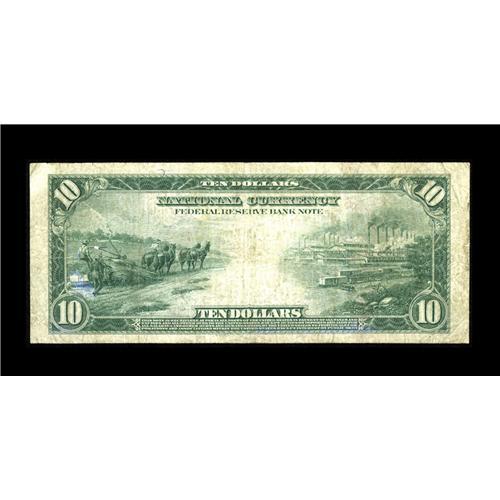 <B>Fr. 816 $10 1915 Federal Reserve Bank Note About Fine.</B></I> A bit of softness is felt on this tough KC issue that is intact, but has some discoloration on the back.<BR><I>From The Bill and Kathy Stella Currency Collection</B></I><BR><BR><b>Shipping:</b> Coin/Currency (<a target="_blank" href="http://www.heritageauctions.com/common/shipping.php">view shipping information</a>)