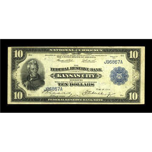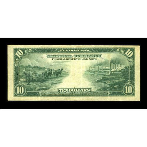 <B>Fr. 817 $10 1915 Federal Reserve Bank Note Very Fine.</B></I> This is actually a scarcer note in circulated grades than in New, which makes it the perfect type example for any collector wanting to own just one $10 FRBN. A few pinholes are noted but affect little.<BR><BR><b>Shipping:</b> Coin/Currency (<a target="_blank" href="http://www.heritageauctions.com/common/shipping.php">view shipping information</a>)