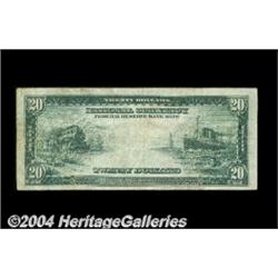 Fr. 823 $20 1918 Federal Reserve Bank Note Very Fine. This is a just plain rare FRBN denomination that was issued by only five Federal Reserve district banks. This Atlanta $20 has sound edges and good color, and is just about perfect for the assigned grade. It is clean, problem-free, and would make an ideal circulated example to represent this scarce design in a type set. <BR><BR><B>Important notice:</B> Heritage usually auctions material at the rate of 200-250 lots per hour. On some occasions eBay Live bid software or the Internet may not be able to keep up with the pace of the auction. We recommend placing a realistic absentee bid now as insurance to avoid disappointment. Occasionally the auctioneer may eliminate or reject an eBay Live bid, and the auctioneer may also reopen a lot after the close of the eBay live bidding (usually because we missed an audience bid), and may reject your bid even if it shows you as the winning bidder. By bidding via eBay Live, you agree that Heritage may award the lot to another bidder at its sole discretion under the circumstances described above or any other reasonable circumstances. Since eBay bids are not shown to us until we open the lot on the floor, we treat those bids just like floor bids. In most cases the floor responds before the eBay bid is presented to us, due to Internet lag time, so for consistency we have made it a policy that floor bids are always considered first over tie eBay live bids. Also please note that all Heritage lots purchased through eBay Live carry a 20% Buyer's Premium. Please make sure you read the Terms and Conditions before you bid. <BR><BR><B>IMPORTANT ANNOUNCEMENT ABOUT RESERVES:</B> Heritage now divulges all reserves on its web site 7 days before every auction. If you want to know whether the reserve on this lot has been met, and if not, what the reserve amount is, please visit this lot page on the HeritageCoin.com web site, or email: bid@HeritageGalleries.com