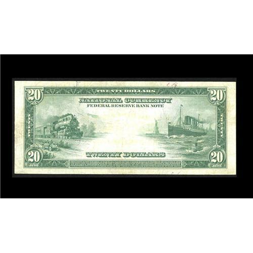 <B>Fr. 826 $20 1915 Federal Reserve Bank Note Very Fine-Extremely Fine.</B></I> A perfectly original lightly circulated example of a very scarce type. It's a new number to the census, all of which are circulated.<BR><I>From The Plymouth Rock Collection</B></I>