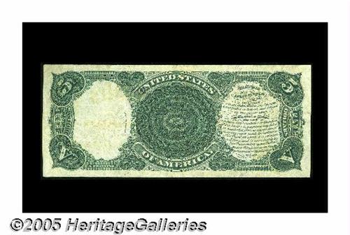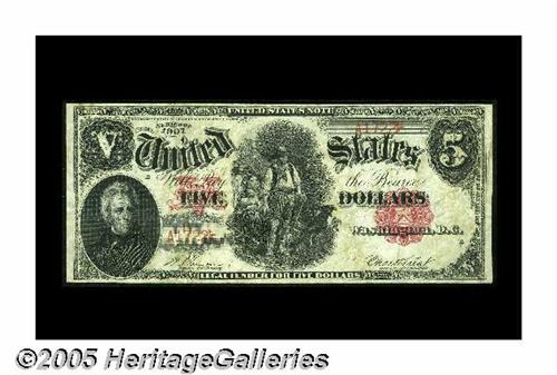 <B>Fr. 83 $5 1907 Legal Tender Very Fine.</B></I> A little bit of soil, but nothing unusual for the grade. It's a bright, well-margined note with a four-digit serial number.