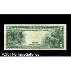 Fr. 833b $5 1914 Red Seal Federal Reserve Note Very F <B>Fr. 833b $5 1914 Red Seal Federal Reserve Note Very Fine.</B></I> The most common of the Red Seal Fives, which makes it an ideal note with which to represent the type. The surfaces are strictly original, the colors very bright, and the note is totally problem free. <BR><BR><B>Important notice:</B> Heritage usually auctions material at the rate of 200-250 lots per hour. On some occasions eBay Live bid software or the Internet may not be able to keep up with the pace of the auction. We recommend placing a realistic absentee bid now as insurance to avoid disappointment. Occasionally the auctioneer may eliminate or reject an eBay Live bid, and the auctioneer may also reopen a lot after the close of the eBay live bidding (usually because we missed an audience bid), and may reject your bid even if it shows you as the winning bidder. By bidding via eBay Live, you agree that Heritage may award the lot to another bidder at its sole discretion under the circumstances described above or any other reasonable circumstances. Since eBay bids are not shown to us until we open the lot on the floor, we treat those bids just like floor bids. In most cases the floor responds before the eBay bid is presented to us, due to Internet lag time, so for consistency we have made it a policy that floor bids are always considered first over tie eBay live bids. Also please note that all Heritage lots purchased through eBay Live carry a 20% Buyer's Premium. Please make sure you read the Terms and Conditions before you bid. This lot is being auctioned in conjunction with a live floor auction by Heritage Galleries & Auctioneers. All final auction and invoice information will be supplied by Heritage Galleries & Auctioneers, and all other information should be considered preliminary. Lot:17661