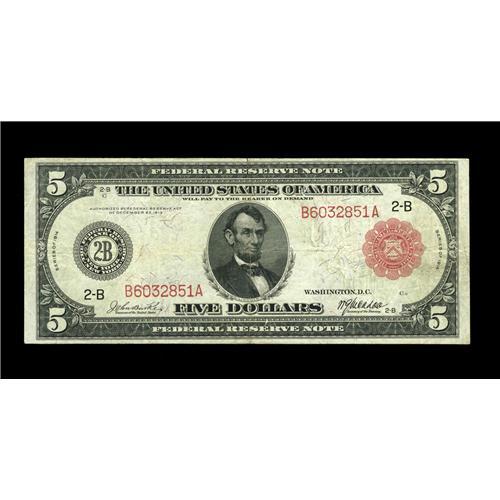 Fr. 833b $5 1914 Red Seal Federal Reserve Note Very Fin Fr. 833b $5 1914 Red Seal Federal Reserve No