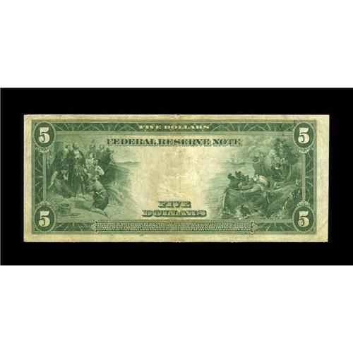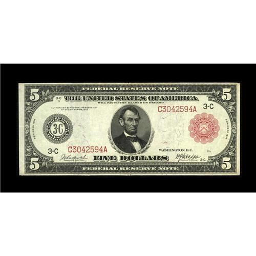 <B>Fr. 834b $5 1914 Red Seal Federal Reserve Note Very Fine.</B></I> Some minor restoration is seen on the back of this Philly $5 note. regardless, the colors remain vibrant and the paper crisp.<BR><I>From The Bill and Kathy Stella Currency Collection</B></I><BR><BR><b>Shipping:</b> Coin/Currency (<a target="_blank" href="http://www.heritageauctions.com/common/shipping.php">view shipping information</a>)