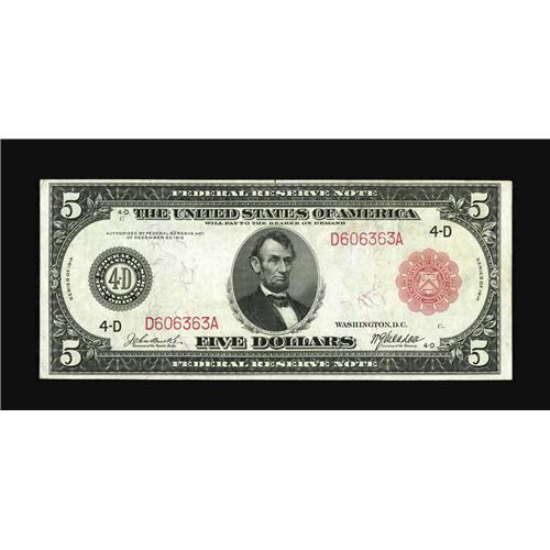Fr. 835b $5 1914 Red Seal Federal Reserve Note About Ne