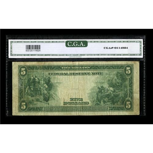 <B>Fr. 835b $5 1914 Red Seal Federal Reserve Note CGA Very Fine 20.</B></I> This moderately circulated Red Seal retains most of its original color. To date only about 45 examples of this issue have been reported.<BR><BR><b>Shipping:</b> Coins & Currency (<a target="_blank" href="http://www.heritageauctions.com/common/shipping.php">view shipping information</a>)
