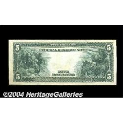 Fr. 837a $5 1914 Red Seal Federal Reserve Note Choice New. Atlanta is a tough district for Red Seal Fives, and this note is from the tougher of the two varieties, with a census in the low teens for all grades combined. The note, from the Serial Number 24 Collection, is part of a Cut Sheet that auctioned years ago at a far lower grade for no reason that we could see then or see now. It's a bright note, with its original paper surfaces, broad margins and no problems at all. <BR><BR><B>Important notice:</B> Heritage usually auctions material at the rate of 200-250 lots per hour. On some occasions eBay Live bid software or the Internet may not be able to keep up with the pace of the auction. We recommend placing a realistic absentee bid now as insurance to avoid disappointment. Occasionally the auctioneer may eliminate or reject an eBay Live bid, and the auctioneer may also reopen a lot after the close of the eBay live bidding (usually because we missed an audience bid), and may reject your bid even if it shows you as the winning bidder. By bidding via eBay Live, you agree that Heritage may award the lot to another bidder at its sole discretion under the circumstances described above or any other reasonable circumstances. Since eBay bids are not shown to us until we open the lot on the floor, we treat those bids just like floor bids. In most cases the floor responds before the eBay bid is presented to us, due to Internet lag time, so for consistency we have made it a policy that floor bids are always considered first over tie eBay live bids. Also please note that all Heritage lots purchased through eBay Live carry a 20% Buyer's Premium. Please make sure you read the Terms and Conditions before you bid. <BR><BR><B>IMPORTANT ANNOUNCEMENT ABOUT RESERVES:</B> Heritage now divulges all reserves on its web site 7 days before every auction. If you want to know whether the reserve on this lot has been met, and if not, what the reserve amount is, please visit this lot page on the HeritageCoin.com web site, or email: bid@HeritageGalleries.com