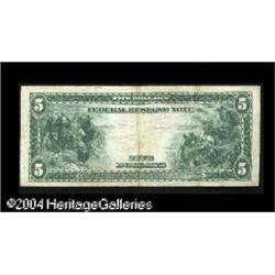 Fr. 838a $5 1914 Red Seal Federal Reserve Note Superb G <B>Fr. 838a $5 1914 Red Seal Federal Reserve Note Very Fine.</B></I> An attractive Red Seal in a middle circulated grade favored by collectors. While there is obvious evidence of circulation, this nice note retains a great deal of original paper body. <BR><BR><B>Important notice:</B> Heritage usually auctions material at the rate of 200-250 lots per hour. On some occasions eBay Live bid software or the Internet may not be able to keep up with the pace of the auction. We recommend placing a realistic absentee bid now as insurance to avoid disappointment. Occasionally the auctioneer may eliminate or reject an eBay Live bid, and the auctioneer may also reopen a lot after the close of the eBay live bidding (usually because we missed an audience bid), and may reject your bid even if it shows you as the winning bidder. By bidding via eBay Live, you agree that Heritage may award the lot to another bidder at its sole discretion under the circumstances described above or any other reasonable circumstances. Since eBay bids are not shown to us until we open the lot on the floor, we treat those bids just like floor bids. In most cases the floor responds before the eBay bid is presented to us, due to Internet lag time, so for consistency we have made it a policy that floor bids are always considered first over tie eBay live bids. Also please note that all Heritage lots purchased through eBay Live carry a 20% Buyer's Premium. Please make sure you read the Terms and Conditions before you bid. This lot is being auctioned in conjunction with a live floor auction by Heritage Galleries & Auctioneers. All final auction and invoice information will be supplied by Heritage Galleries & Auctioneers, and all other information should be considered preliminary. Lot:17662