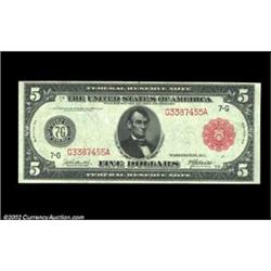 Fr. 838b $5 1914 Red Seal Federal Reserve Note Choice New. Well margined, with good color and all its original embossing. Red Seals have been popular of late, and this good-looking piece approaches the Gem grade. Important notice: We expect to be auctioning lots at the rate of 200-250 per hour. Sometimes eBay Premier live bid software cannot keep up with that pace, so we strongly recommend that you place a realistic proxy bid now as insurance to avoid disappointment. Also please note that all Heritage/CAA lots purchased through eBay Premier carry a 20% Buyer's Premium. Please make sure you read the Terms and Conditions.