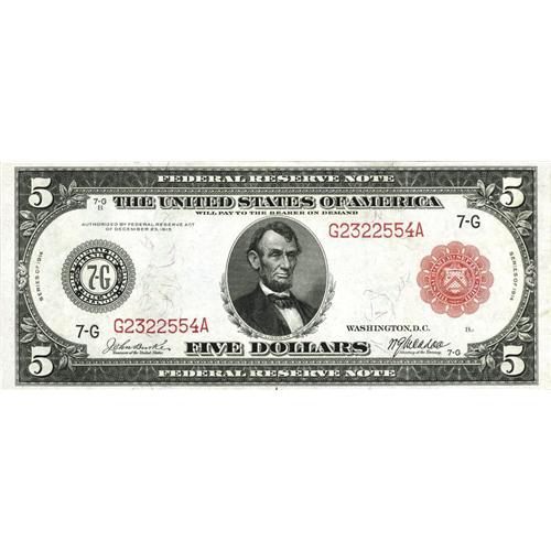 <B>Fr. 838b $5 1914 Red Seal Federal Reserve Note Gem New.</B></I> This note was last sold by CAA in 2000 and not much has changed over the years. Perfect centering, monster margins, vibrant color, and plenty of eye appeal are noticed. Definitely a type note that will be put away again for many years by its new owner.