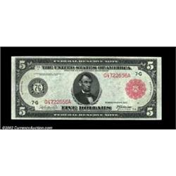 Fr. 838b $5 Red Seal Federal Reserve Note Extremely Fine-About New. This is a lovely high end circulated example that possesses a couple of light folds but retains nearly full brightness. The colors are fully original, and some of the embossing is readily apparent. With the overwhelming popularity of these Red Seal notes in today's market, we expect this note to realize in excess of... Important notice: We expect to be auctioning lots at the rate of 200-250 per hour. Sometimes eBay Premier live bid software cannot keep up with that pace, so we strongly recommend that you place a realistic proxy bid now as insurance to avoid disappointment. Also please note that all Heritage/CAA lots purchased through eBay Premier carry a 20% Buyer's Premium. Please make sure you read the Terms and Conditions.