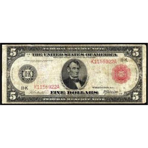 <style type="text/css"> body, td, th { font-family: Arial, Helvetica, sans-serif; font-size: 12px; color: #482424; margin: 0px; padding: 0px; } #header { background-image: url(http://www.bowersandmerena.com/ebay/images/template_v3_01.gif); clear: both; background-color: #590303; border-top-width: 2px; border-top-style: solid; border-top-color: #B38C4F;}#header #header_wrapper { height: 75px; clear: both; width: 800px; margin-right: auto; margin-left: auto; background-image: url(http://www.bowersandmerena.com/ebay/images/template_v3_03.gif); background-repeat: no-repeat; background-position: right; color: #F3EDCC;}#header #header_wrapper #header_logo { float: left; height: 75px; width: 444px; background-image: url(http://www.bowersandmerena.com/ebay/images/template_v3_02.gif); background-repeat: no-repeat; font-size: 10px; text-transform: capitalize; color: #B38C4F;}#header #header_wrapper #header_right { float: left; height: 75px; width: 356px; text-align: right;}#header #header_wrapper #header_right #headerLoginBtn { margin-bottom: 30px;}#header #header_wrapper #header_right input#txtSearch { color: #B49056; border: 1px solid #B49056; width: 175px; padding-top: 3px; padding-right: 3px; padding-bottom: 4px; padding-left: 3px;}#nav { height: 37px; background-image: url(http://www.bowersandmerena.com/ebay/images/template_v3_05.gif); clear: both;}#nav #nav_wrapper { height: 35px; width: 800px; margin-right: auto; margin-left: auto; border-left-width: 1px; border-left-style: solid; border-left-color: #B38C4F;}#nav #nav_wrapper a { padding-right: 15px; padding-left: 15px; border-right-width: 1px; border-right-style: solid; border-right-color: #B38C4F; height: 25px; padding-top: 10px; display: block; float: left; text-decoration: none; font-weight: bold; color: #5D0303;}#nav #nav_wrapper a:hover { color: #B38C4F;}#nav #nav_wrapper #search { float: right; padding-top: 7px;}#nav #nav_wrapper #search #txtSearch { font-family: Arial, Helvetica, sans-serif; font-size: 10px; text-transform: uppercase; color: #D2AE75; border: 1px solid #B38C4F; padding: 3px;}#content_bgd { background-image: url(http://www.bowersandmerena.com/ebay/images/template_v3_09.gif); background-repeat: repeat-y; background-position: center; padding-top: 15px; padding-bottom: 15px; background-color: #FBFBDB;}#content_wrapper { clear: both; height: auto; width: 800px; margin-right: auto; margin-left: auto;}.LotDetailWhite{ line-height:normal; font-size:13px; font-family: arial,helvetica,sans-serif; color: White; font-weight: bold;}.LotDetailInformation{ line-height:normal; font-size: 13px; font-family: arial,helvetica,sans-serif;}.LotDetailMessage{ line-height:normal; font-size: 13px; font-family: arial,helvetica,sans-serif; color: red;}}tr.HeaderAuctionTitle td { color: #000000; font-weight: bold; padding: 2px; background-image: url(http://www.bowersandmerena.com/ebay/images/template_v3_05.gif); background-repeat: repeat-x; border-bottom-width: 1px; border-bottom-style: solid; border-bottom-color: #B38C4F;}table.AuctionSummary a, table.AuctionSummary a:link, table.AuctionSummary a:visited { color: #0000FF; text-decoration: none;}}td.tableHeaderLeft { border-left-width: 1px; border-left-style: solid; border-left-color: #B38C4F;}td.tableHeaderRight { border-right-width: 1px; border-right-style: solid; border-right-color: #B38C4F;}td.tableCellMiddle { border-left-width: 1px; border-left-style: solid; border-left-color: #B38C4F; border-right-width: 1px; border-right-style: solid; border-right-color: #B38C4F; padding: 5px;}tr.footer td { border-top-width: 1px; border-top-style: solid; border-top-color: #B38C4F;}</style></head><body><div id="header"> <div id="header_wrapper"> <div id="header_logo"> </div> <div id="header_right"> </div> </div></div><div id="nav"> <div id="nav_wrapper"> <a href="http://www.bowersandmerena.com">Our eBayLive Auctions</a> <a href="#PaymentInfo">Payment Information</a> <a href="#ShippingInfo">Shipping Information</a> <a href="#About">About Bowers and Merena</a> </div></div><div id="content_bgd"> <div id="content_wrapper"> <table width="100%" border="0" cellpadding="5" cellspacing="0" class="AuctionSummary"> <tbody> <tr class="HeaderAuctionTitle" style="height: 25px;"> <td align="left" class="tableHeaderLeft" > </td> <td align="center" class="tableHeaderRight"> <span style="font-size: large;">Lot #109. Fr. 842b. 1914 $5 Federal Reserve Note. Red Seal. Very Good.</span> </td> </tr> <tr> <td colspan="3" class="tableCellMiddle"> Just over 30 of this number have been verified by serial number. Our offering tonight is at the more affordable end of the quality spectrum. While obviously quite circulated, there are no pinholes, and the example being sold here is just a touch-too-much-circulation soiling from Fine. Est. $250 - $350