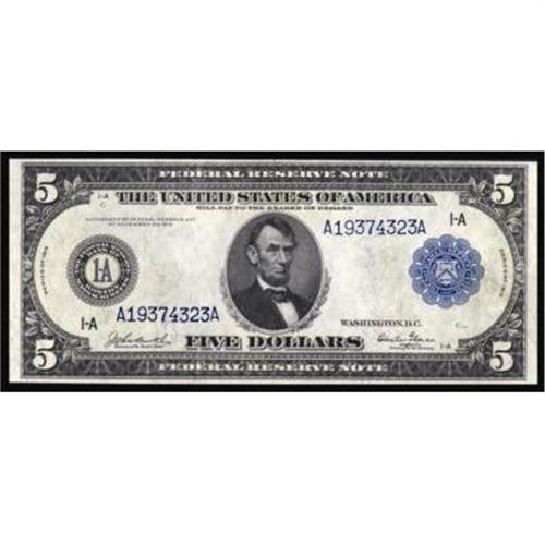 Fr. 845. 1914 $5 Federal Reserve Note. Blue Seal. PMG Choice Uncirculated 64EPQ.