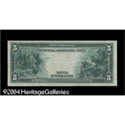Fr. 846 $5 1914 Federal Reserve Note About New. A scarc <B>Fr. 846 $5 1914 Federal Reserve Note About New.</B></I> A scarcer Boston District note with only about 30 examples known in all grades combined. <BR><BR><B>Important notice:</B> Heritage usually auctions material at the rate of 200-250 lots per hour. On some occasions eBay Live bid software or the Internet may not be able to keep up with the pace of the auction. We recommend placing a realistic absentee bid now as insurance to avoid disappointment. Occasionally the auctioneer may eliminate or reject an eBay Live bid, and the auctioneer may also reopen a lot after the close of the eBay live bidding (usually because we missed an audience bid), and may reject your bid even if it shows you as the winning bidder. By bidding via eBay Live, you agree that Heritage may award the lot to another bidder at its sole discretion under the circumstances described above or any other reasonable circumstances. Since eBay bids are not shown to us until we open the lot on the floor, we treat those bids just like floor bids. In most cases the floor responds before the eBay bid is presented to us, due to Internet lag time, so for consistency we have made it a policy that floor bids are always considered first over tie eBay live bids. Also please note that all Heritage lots purchased through eBay Live carry a 20% Buyer's Premium. Please make sure you read the Terms and Conditions before you bid. This lot is being auctioned in conjunction with a live floor auction by Heritage Galleries & Auctioneers. All final auction and invoice information will be supplied by Heritage Galleries & Auctioneers, and all other information should be considered preliminary. Lot:17670