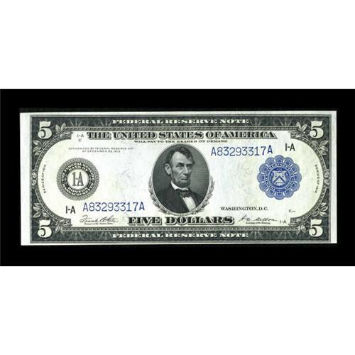 <B>Fr. 847a $5 1914 Federal Reserve Note Very Choice New.</B></I> A fresh and attractive Boston FRN.<BR><BR><b>Shipping:</b> Coins & Currency (<a target="_blank" href="http://www.heritageauctions.com/common/shipping.php">view shipping information</a>)