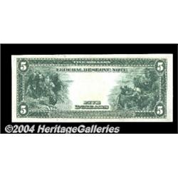 Fr. 848 $5 1914 Federal Reserve Note Choice About New. About three dozen examples are known. <BR><BR><B>Important notice:</B> Heritage usually auctions material at the rate of 200-250 lots per hour. On some occasions eBay Live bid software or the Internet may not be able to keep up with the pace of the auction. We recommend placing a realistic absentee bid now as insurance to avoid disappointment. Occasionally the auctioneer may eliminate or reject an eBay Live bid, and the auctioneer may also reopen a lot after the close of the eBay live bidding (usually because we missed an audience bid), and may reject your bid even if it shows you as the winning bidder. By bidding via eBay Live, you agree that Heritage may award the lot to another bidder at its sole discretion under the circumstances described above or any other reasonable circumstances. Since eBay bids are not shown to us until we open the lot on the floor, we treat those bids just like floor bids. In most cases the floor responds before the eBay bid is presented to us, due to Internet lag time, so for consistency we have made it a policy that floor bids are always considered first over tie eBay live bids. Also please note that all Heritage lots purchased through eBay Live carry a 20% Buyer's Premium. Please make sure you read the Terms and Conditions before you bid. <BR><BR><B>IMPORTANT ANNOUNCEMENT ABOUT RESERVES:</B> Heritage now divulges all reserves on its web site 7 days before every auction. If you want to know whether the reserve on this lot has been met, and if not, what the reserve amount is, please visit this lot page on the HeritageCoin.com web site, or email: bid@HeritageGalleries.com