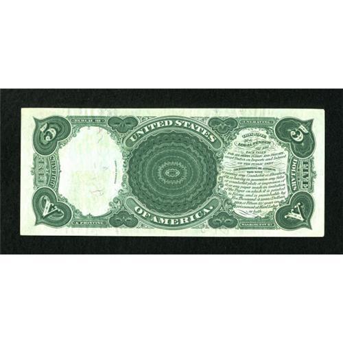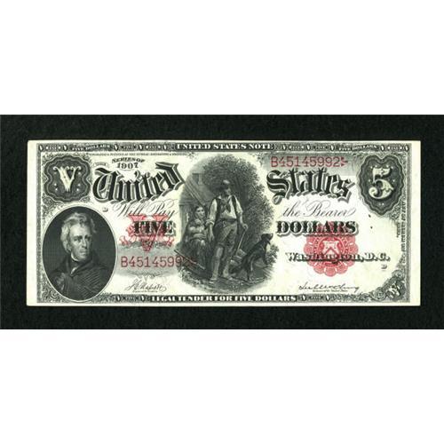 <B>Fr. 85 $5 1907 Legal Tender Very Fine-Extremely Fine.</B></I> This Friedberg number contains about one-fifth of the notes in the census as does Fr. 91. This example has dark inks and a couple tiny spots on the face.<BR><BR><b>Shipping:</b> Coins & Currency (<a target="_blank" href="http://www.heritageauctions.com/common/shipping.php">view shipping information</a>)