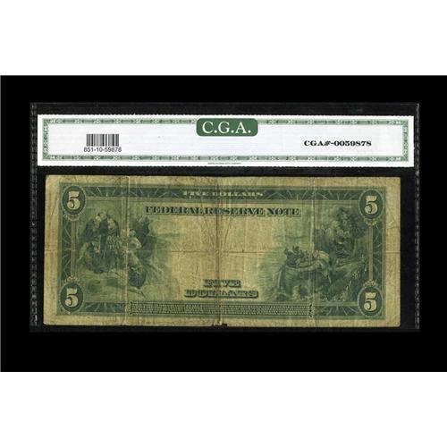 Fr. 851a $5 1914 Federal Reserve Note CGA Very Good-Fin Fr. 851a $5 1914 Federal Reserve Note CGA Ve