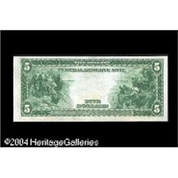 Fr. 851b $5 1914 Federal Reserve Note Very Choice New <B>Fr. 851b $5 1914 Federal Reserve Note Very Choice New.</B></I> A scarcer "b"-type Fed that is Gem but for a slightly tight bottom margin. <BR><BR><B>Important notice:</B> Heritage usually auctions material at the rate of 200-250 lots per hour. On some occasions eBay Live bid software or the Internet may not be able to keep up with the pace of the auction. We recommend placing a realistic absentee bid now as insurance to avoid disappointment. Occasionally the auctioneer may eliminate or reject an eBay Live bid, and the auctioneer may also reopen a lot after the close of the eBay live bidding (usually because we missed an audience bid), and may reject your bid even if it shows you as the winning bidder. By bidding via eBay Live, you agree that Heritage may award the lot to another bidder at its sole discretion under the circumstances described above or any other reasonable circumstances. Since eBay bids are not shown to us until we open the lot on the floor, we treat those bids just like floor bids. In most cases the floor responds before the eBay bid is presented to us, due to Internet lag time, so for consistency we have made it a policy that floor bids are always considered first over tie eBay live bids. Also please note that all Heritage lots purchased through eBay Live carry a 20% Buyer's Premium. Please make sure you read the Terms and Conditions before you bid. This lot is being auctioned in conjunction with a live floor auction by Heritage Galleries & Auctioneers. All final auction and invoice information will be supplied by Heritage Galleries & Auctioneers, and all other information should be considered preliminary. Lot:17680