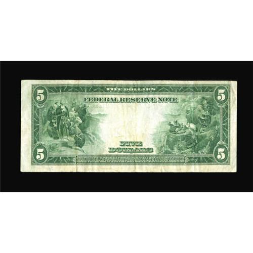<B>Fr. 851b $5 1914 Federal Reserve Star Note Very Fine.</B></I> A very rare star, with this one of just six examples reported. Two of that number are damaged, leaving just four unmarred specimens for collectors. This is a nice one, with good color and paper quality. Expect to see a winning bid in the vicinity of...<BR><I>From The Lawrence O'Neal Collection</B></I><BR><BR><b>Shipping:</b> Coins & Currency (<a target="_blank" href="http://www.heritageauctions.com/common/shipping.php">view shipping information</a>)