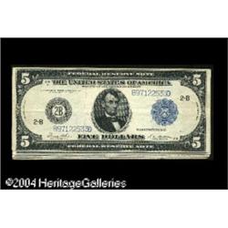 Fr. 851c $5 1914 Federal Reserve Note VF. <B>$5 and $50 White-Mellon FRNs.</B></I><BR>Fr. 851c $5 1914 Federal Reserve Note VF<BR>Fr. 855a $5 1914 Federal Reserve Note VF-XF, pinholes<BR>Fr. 1031b $50 1914 Federal Reserve Note F-VF, washed<BR>Fr. 1039b $50 1914 Federal Reserve Note Fine.<BR> 4 notes <BR><BR><B>Important notice:</B> Heritage usually auctions material at the rate of 200-250 lots per hour. On some occasions eBay Live bid software or the Internet may not be able to keep up with the pace of the auction. We recommend placing a realistic absentee bid now as insurance to avoid disappointment. Occasionally the auctioneer may eliminate or reject an eBay Live bid, and the auctioneer may also reopen a lot after the close of the eBay live bidding (usually because we missed an audience bid), and may reject your bid even if it shows you as the winning bidder. By bidding via eBay Live, you agree that Heritage may award the lot to another bidder at its sole discretion under the circumstances described above or any other reasonable circumstances. Since eBay bids are not shown to us until we open the lot on the floor, we treat those bids just like floor bids. In most cases the floor responds before the eBay bid is presented to us, due to Internet lag time, so for consistency we have made it a policy that floor bids are always considered first over tie eBay live bids. Also please note that all Heritage lots purchased through eBay Live carry a 20% Buyer's Premium. Please make sure you read the Terms and Conditions before you bid. This lot is being auctioned in conjunction with a live floor auction by Heritage Galleries & Auctioneers. All final auction and invoice information will be supplied by Heritage Galleries & Auctioneers, and all other information should be considered preliminary. Lot:17919
