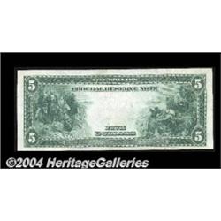 Fr. 852 $5 1914 Federal Reserve Note Extremely Fine. A surprisingly scarce note, this is only the sixth we've handled, with the total census standing at just a few more than ten. The note is bright, attractive and very well margined, giving the appearance of a far higher grade unless examined very closely. <BR><BR><B>Important notice:</B> Heritage usually auctions material at the rate of 200-250 lots per hour. On some occasions eBay Live bid software or the Internet may not be able to keep up with the pace of the auction. We recommend placing a realistic absentee bid now as insurance to avoid disappointment. Occasionally the auctioneer may eliminate or reject an eBay Live bid, and the auctioneer may also reopen a lot after the close of the eBay live bidding (usually because we missed an audience bid), and may reject your bid even if it shows you as the winning bidder. By bidding via eBay Live, you agree that Heritage may award the lot to another bidder at its sole discretion under the circumstances described above or any other reasonable circumstances. Since eBay bids are not shown to us until we open the lot on the floor, we treat those bids just like floor bids. In most cases the floor responds before the eBay bid is presented to us, due to Internet lag time, so for consistency we have made it a policy that floor bids are always considered first over tie eBay live bids. Also please note that all Heritage lots purchased through eBay Live carry a 20% Buyer's Premium. Please make sure you read the Terms and Conditions before you bid. <BR><BR><B>IMPORTANT ANNOUNCEMENT ABOUT RESERVES:</B> Heritage now divulges all reserves on its web site 7 days before every auction. If you want to know whether the reserve on this lot has been met, and if not, what the reserve amount is, please visit this lot page on the HeritageCoin.com web site, or email: bid@HeritageGalleries.com