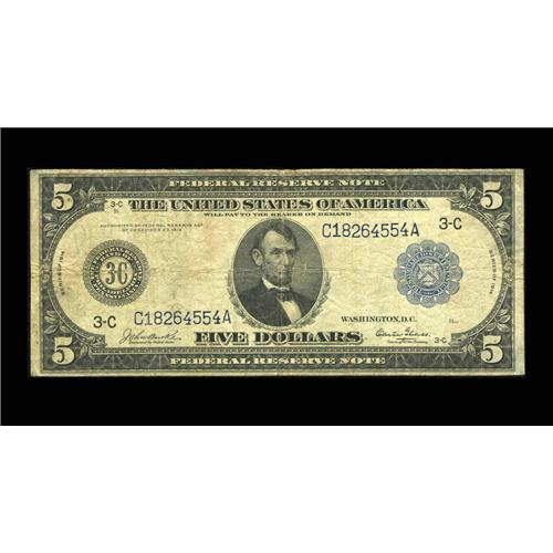 Fr. 853 $5 1914 Federal Reserve Note Fine.The census fo Fr. 853 $5 1914 Federal Reserve Note Fine.
