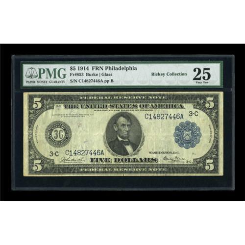 <B>Fr. 853 $5 1914 Federal Reserve Note PMG Very Fine 25.</B></I> Original and problem free.<BR><BR><b>Shipping:</b> Coins & Currency (<a target="_blank" href="http://www.heritageauctions.com/common/shipping.php">view shipping information</a>)