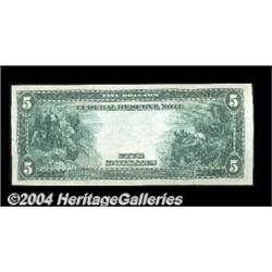 Fr. 854 $5 1914 Federal Reserve Note Very Choice New. A bit tight at the bottom right. <BR><BR><B>Important notice:</B> Heritage usually auctions material at the rate of 200-250 lots per hour. On some occasions eBay Live bid software or the Internet may not be able to keep up with the pace of the auction. We recommend placing a realistic absentee bid now as insurance to avoid disappointment. Occasionally the auctioneer may eliminate or reject an eBay Live bid, and the auctioneer may also reopen a lot after the close of the eBay live bidding (usually because we missed an audience bid), and may reject your bid even if it shows you as the winning bidder. By bidding via eBay Live, you agree that Heritage may award the lot to another bidder at its sole discretion under the circumstances described above or any other reasonable circumstances. Since eBay bids are not shown to us until we open the lot on the floor, we treat those bids just like floor bids. In most cases the floor responds before the eBay bid is presented to us, due to Internet lag time, so for consistency we have made it a policy that floor bids are always considered first over tie eBay live bids. Also please note that all Heritage lots purchased through eBay Live carry a 20% Buyer's Premium. Please make sure you read the Terms and Conditions before you bid. <BR><BR><B>IMPORTANT ANNOUNCEMENT ABOUT RESERVES:</B> Heritage now divulges all reserves on its web site 7 days before every auction. If you want to know whether the reserve on this lot has been met, and if not, what the reserve amount is, please visit this lot page on the HeritageCoin.com web site, or email: bid@HeritageGalleries.com
