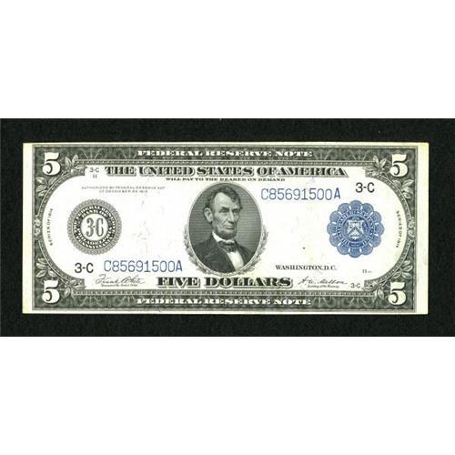 <B>Fr. 855a $5 1914 Federal Reserve Note Extremely Fine.</B></I> The folds are well-hidden on this $5 that has a small repaired tear at bottom center.<BR><BR><b>Shipping:</b> Coins & Currency (<a target="_blank" href="http://www.heritageauctions.com/common/shipping.php">view shipping information</a>)