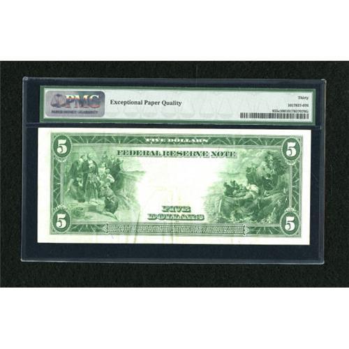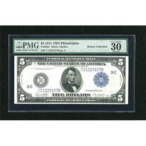 <B>Fr. 855c $5 1914 Federal Reserve Note PMG Very Fine 30 EPQ.</B></I> A most pleasing example of this "C" variety.<BR><BR><b>Shipping:</b> Coins & Currency (<a target="_blank" href="http://www.heritageauctions.com/common/shipping.php">view shipping information</a>)