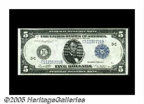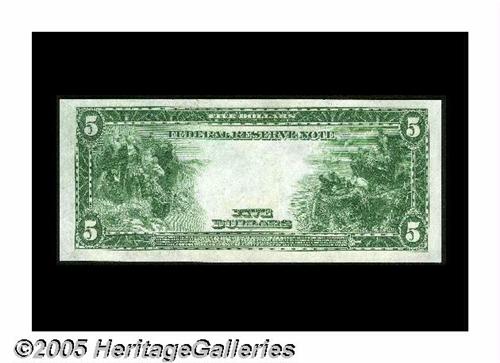 <B>Fr. 855c $5 1914 Federal Reserve Note Superb Gem New.</B></I> A flawless, impeccable, perfectly centered, strictly original note that simply has to be one of the finest "c" Type Feds in existence. Although rather inexpensive, this is a truly rare item in this grade.