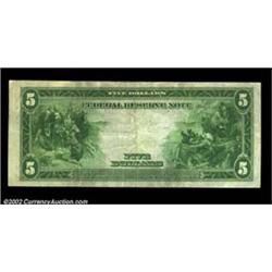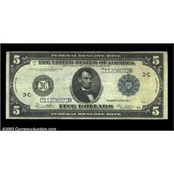 Fr. 855c $5 1914 Federal Reserve Note Very Fine. A nice, original, lightly circulated example of the much scarcer "c" type. Important notice: We expect to be auctioning lots at the rate of 200-250 per hour. Sometimes eBay Premier live bid software cannot keep up with that pace, so we strongly recommend that you place a realistic proxy bid now as insurance to avoid disappointment. Also please note that all Heritage/CAA lots purchased through eBay Premier carry a 20% Buyer's Premium. Please make sure you read the Terms and Conditions.