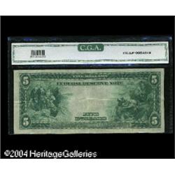 Fr. 857 $5 1914 Federal Reserve Note CGA Very Fine 30. <B>Fr. 857 $5 1914 Federal Reserve Note CGA Very Fine 30.</B></I> Quite a rare number with about a dozen notes in all grades combined. We've sold only four examples in our previous 38 auctions. This one is remarkably clean for the grade. <BR><BR><B>Important notice:</B> Heritage usually auctions material at the rate of 200-250 lots per hour. On some occasions eBay Live bid software or the Internet may not be able to keep up with the pace of the auction. We recommend placing a realistic absentee bid now as insurance to avoid disappointment. Occasionally the auctioneer may eliminate or reject an eBay Live bid, and the auctioneer may also reopen a lot after the close of the eBay live bidding (usually because we missed an audience bid), and may reject your bid even if it shows you as the winning bidder. By bidding via eBay Live, you agree that Heritage may award the lot to another bidder at its sole discretion under the circumstances described above or any other reasonable circumstances. Since eBay bids are not shown to us until we open the lot on the floor, we treat those bids just like floor bids. In most cases the floor responds before the eBay bid is presented to us, due to Internet lag time, so for consistency we have made it a policy that floor bids are always considered first over tie eBay live bids. Also please note that all Heritage lots purchased through eBay Live carry a 20% Buyer's Premium. Please make sure you read the Terms and Conditions before you bid. This lot is being auctioned in conjunction with a live floor auction by Heritage Galleries & Auctioneers. All final auction and invoice information will be supplied by Heritage Galleries & Auctioneers, and all other information should be considered preliminary. Lot:17684