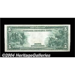Fr. 857 $5 1914 Federal Reserve Note Very Choice New. Quite near the full Gem grade and likely the finest known example. CAA has sold only four 857's in our 30-odd sales, and the total census is fewer than ten. <BR><BR><B>Important notice:</B> Heritage usually auctions material at the rate of 200-250 lots per hour. On some occasions eBay Live bid software or the Internet may not be able to keep up with the pace of the auction. We recommend placing a realistic absentee bid now as insurance to avoid disappointment. Occasionally the auctioneer may eliminate or reject an eBay Live bid, and the auctioneer may also reopen a lot after the close of the eBay live bidding (usually because we missed an audience bid), and may reject your bid even if it shows you as the winning bidder. By bidding via eBay Live, you agree that Heritage may award the lot to another bidder at its sole discretion under the circumstances described above or any other reasonable circumstances. Since eBay bids are not shown to us until we open the lot on the floor, we treat those bids just like floor bids. In most cases the floor responds before the eBay bid is presented to us, due to Internet lag time, so for consistency we have made it a policy that floor bids are always considered first over tie eBay live bids. Also please note that all Heritage lots purchased through eBay Live carry a 20% Buyer's Premium. Please make sure you read the Terms and Conditions before you bid. <BR><BR><B>IMPORTANT ANNOUNCEMENT ABOUT RESERVES:</B> Heritage now divulges all reserves on its web site 7 days before every auction. If you want to know whether the reserve on this lot has been met, and if not, what the reserve amount is, please visit this lot page on the HeritageCoin.com web site, or email: bid@HeritageGalleries.com
